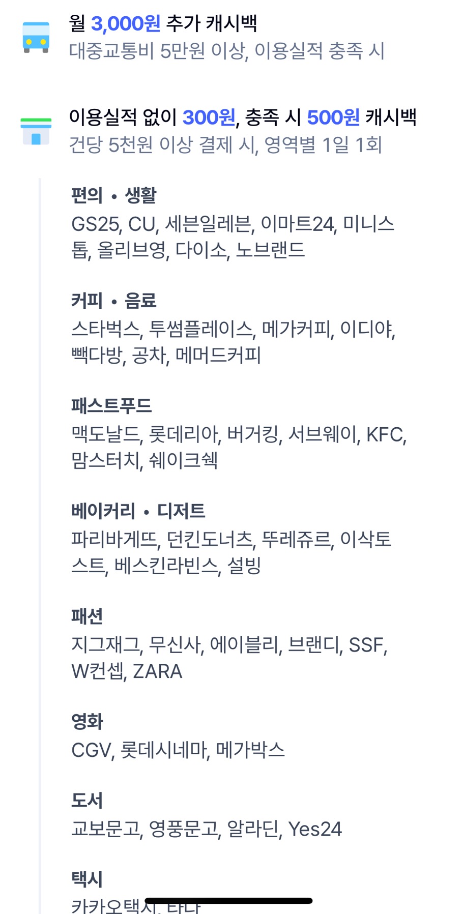 5천원 이상 결제 건당 500원 캐시백이라