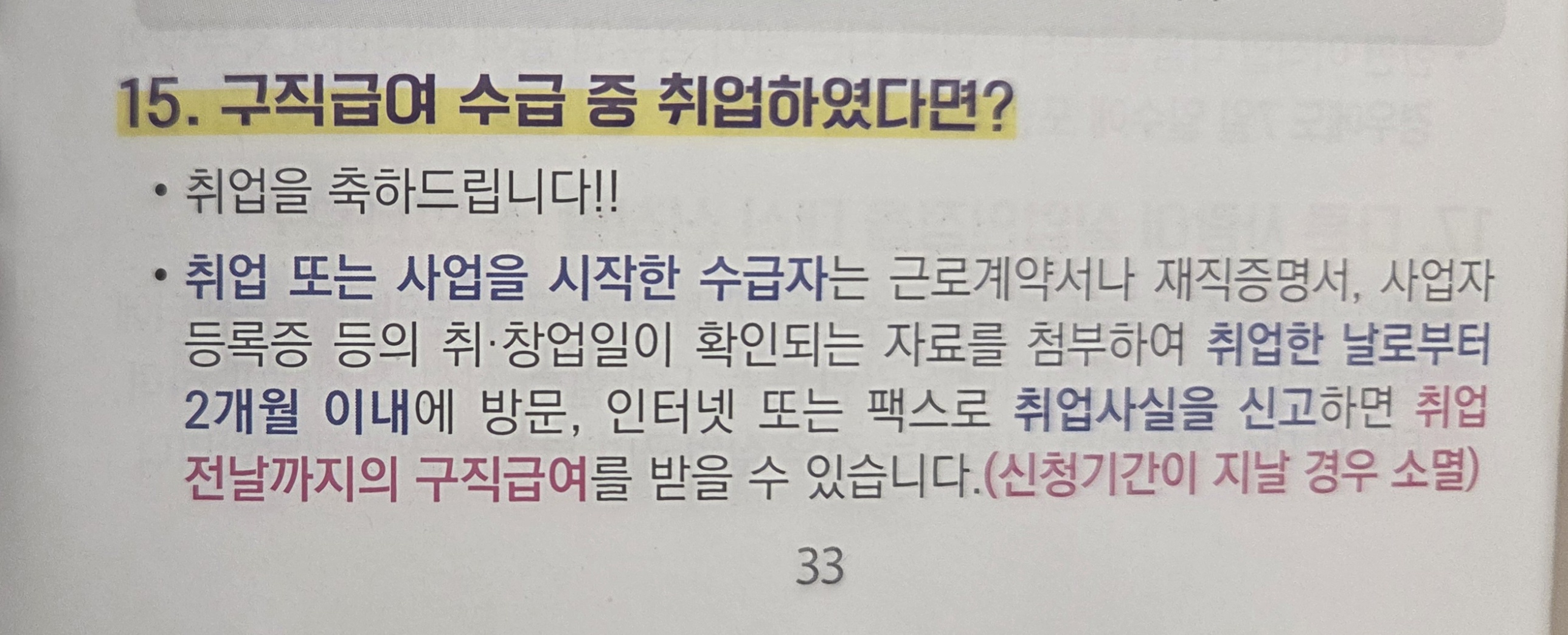 (취업한 날로부터 2개월 이내에 신고하지 않으면 소멸)